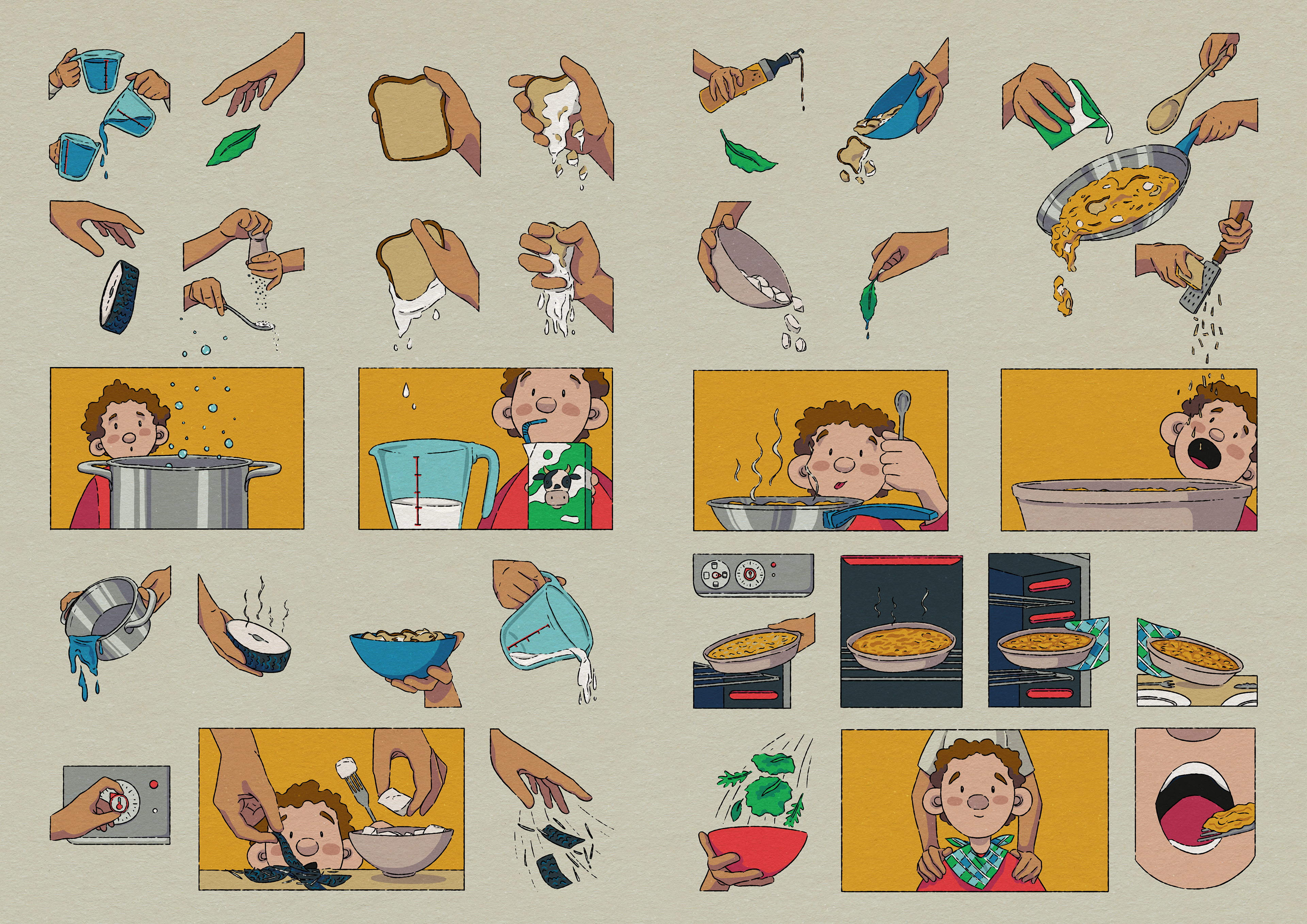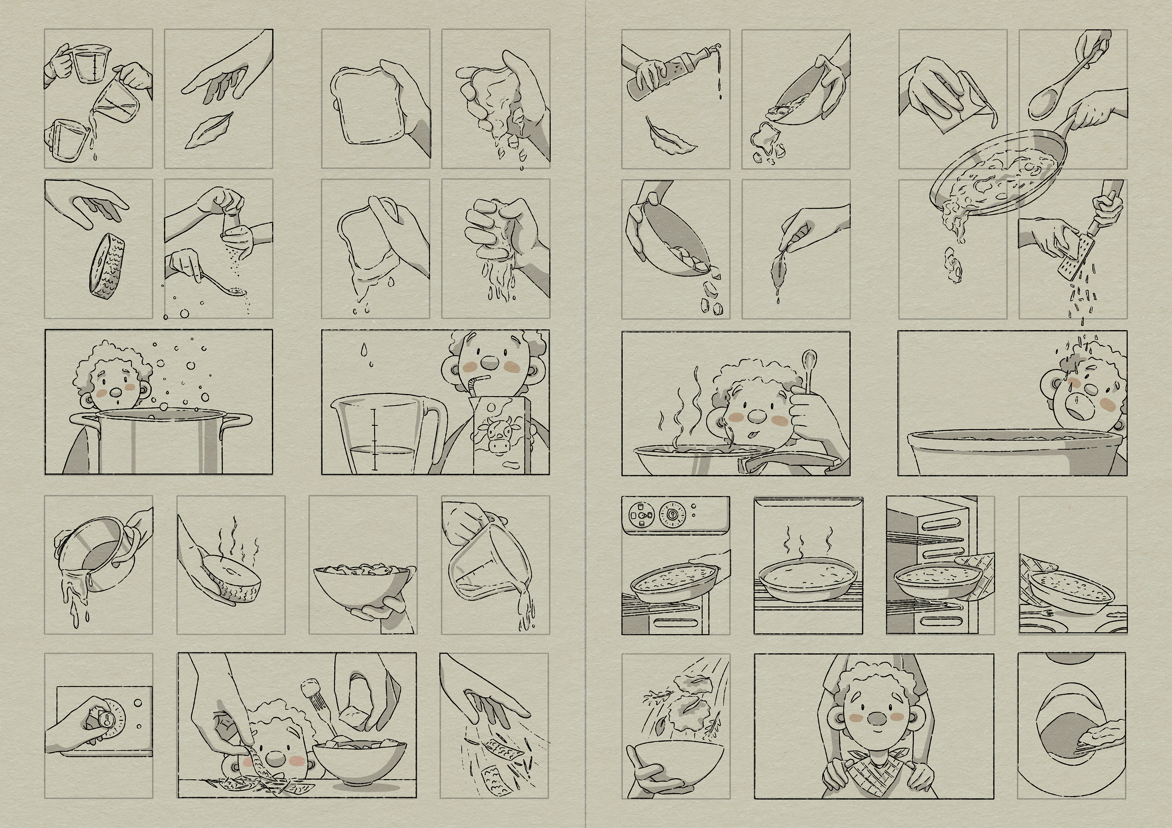 The aim of this exercise was to illustrate a recipe of "Spiritual Cod" a typical Portuguese dish while focusing on the rhythm and equilibrium of the spread. Below are some process pictures ↓